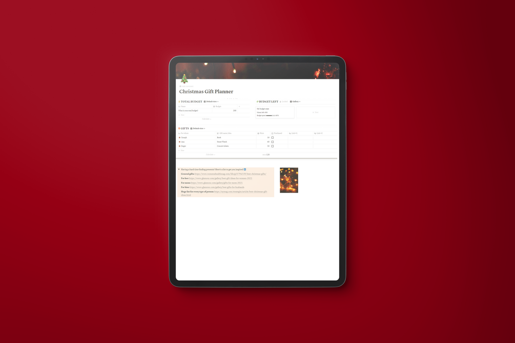Get on the Christmas mood with this inspiring template and start planning your gifts for your loved ones!